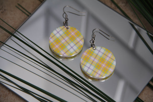 Plaid Jaune Circle Earrings