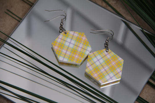 Plaid Jaune Hexagon Earrings